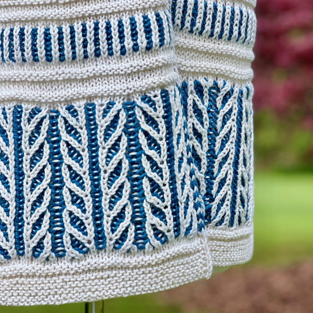 The key is contrast: choose a light and a dark shade so the botanical motifs truly come to life in your hands. Jennifer Weissman advises using high-contrast colours for maximum impact, as this truly highlights the beautiful texture of brioche knitting. It is recommended to use 4mm needles for the patterns to ensure the final result is soft and supple.