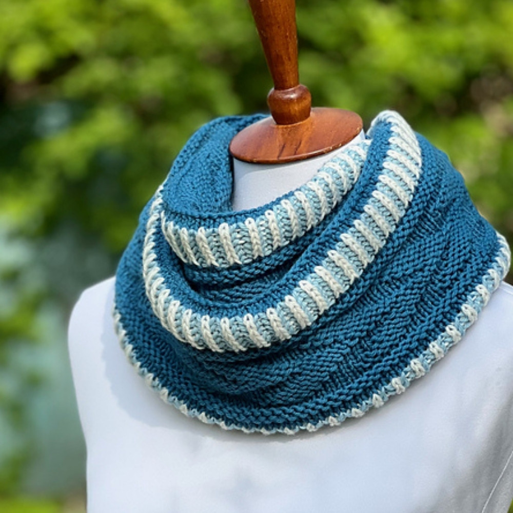 The cowl is a practical and modern accessory that beautifully highlights the textures of the brioche technique.