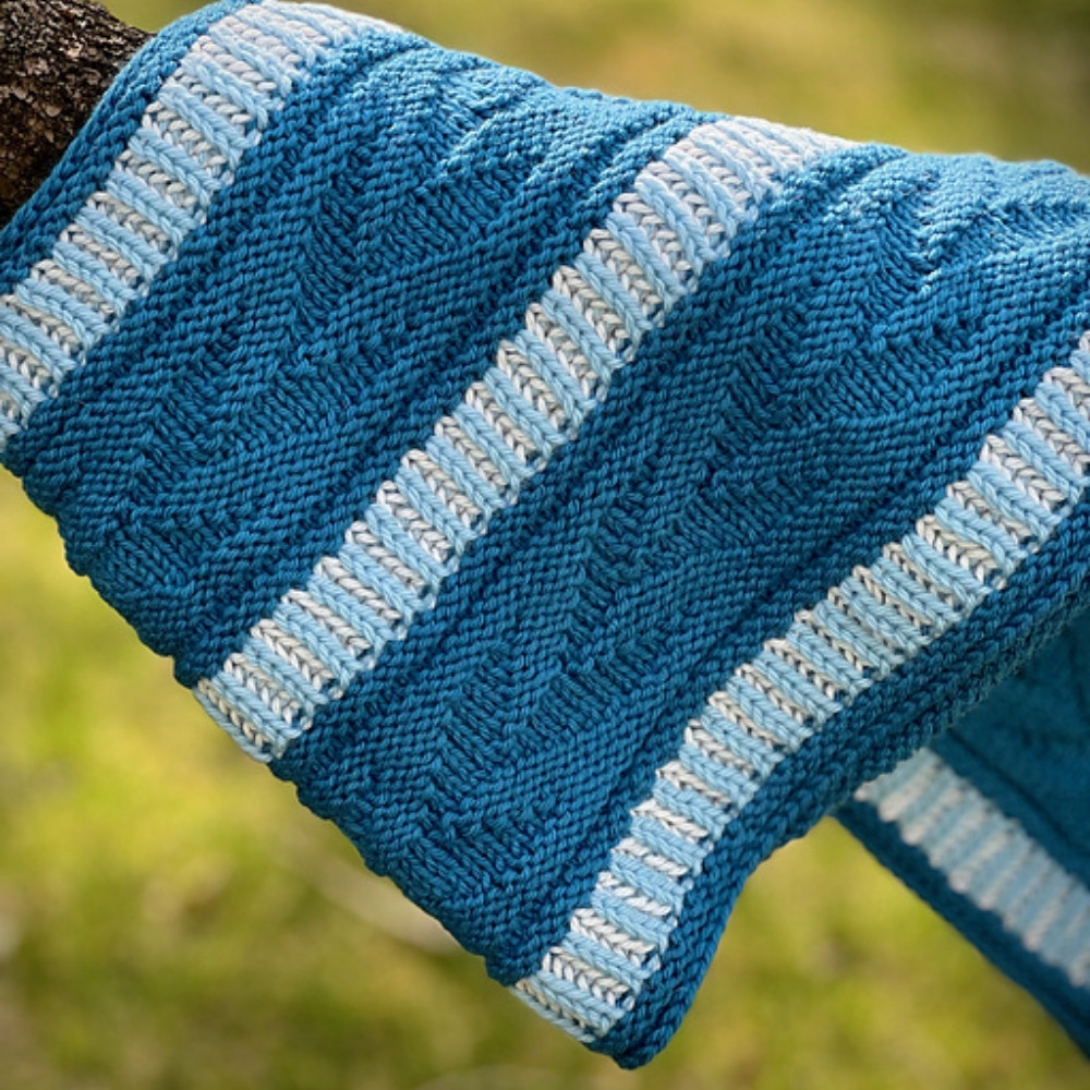 - Woolwise Version (approx. 127 cm x 28 cm): 2 balls of 749 Cosmic Blue , 1 ball of 706 Birch Bark , and 1 ball of 743 Frosty Sky.